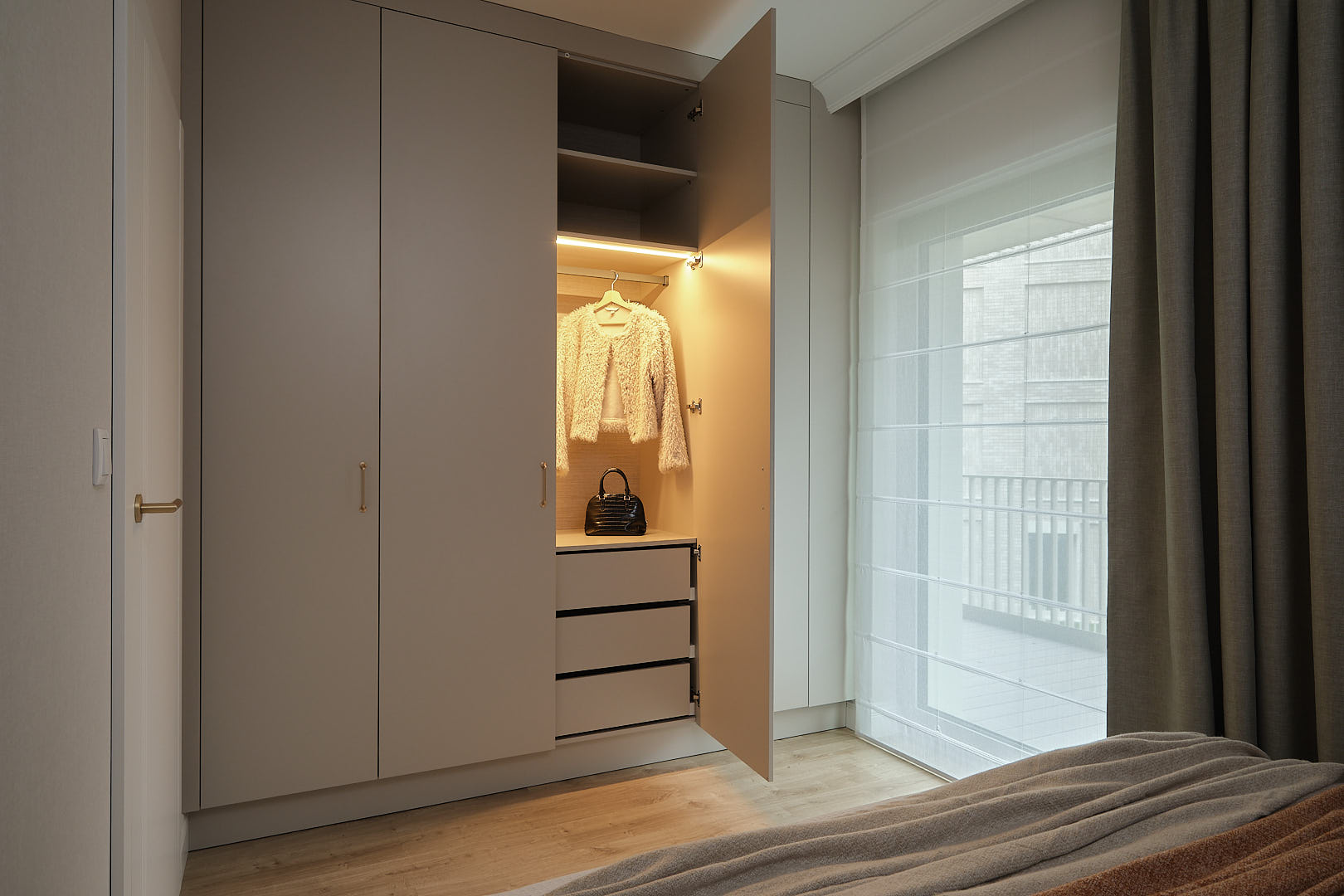 Apartamenty przy Parku Szczytnickim to prestiżowe, kameralne osiedle w zielonej części Wrocławia. Inwestycja została wyróżniona w konkursie European Property Awards 2025-2026. Sesja zdjęciowa tego apartamentu powstała na zlecenie studia architektury wnętrz.